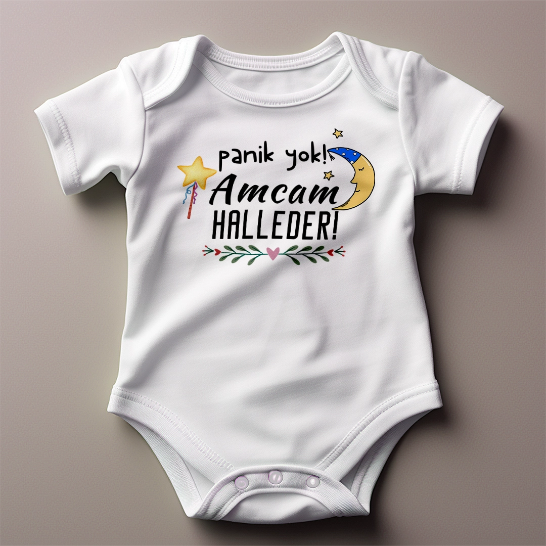 Panik Yok Amcam Halleder Ayıcıklı Baskılı Zıbın