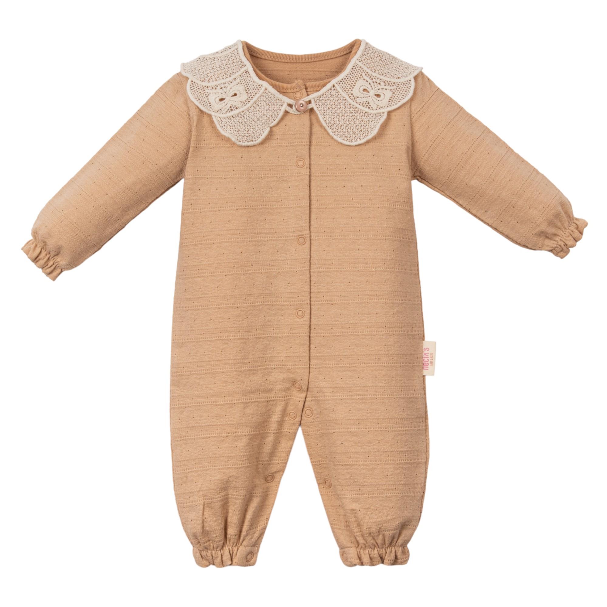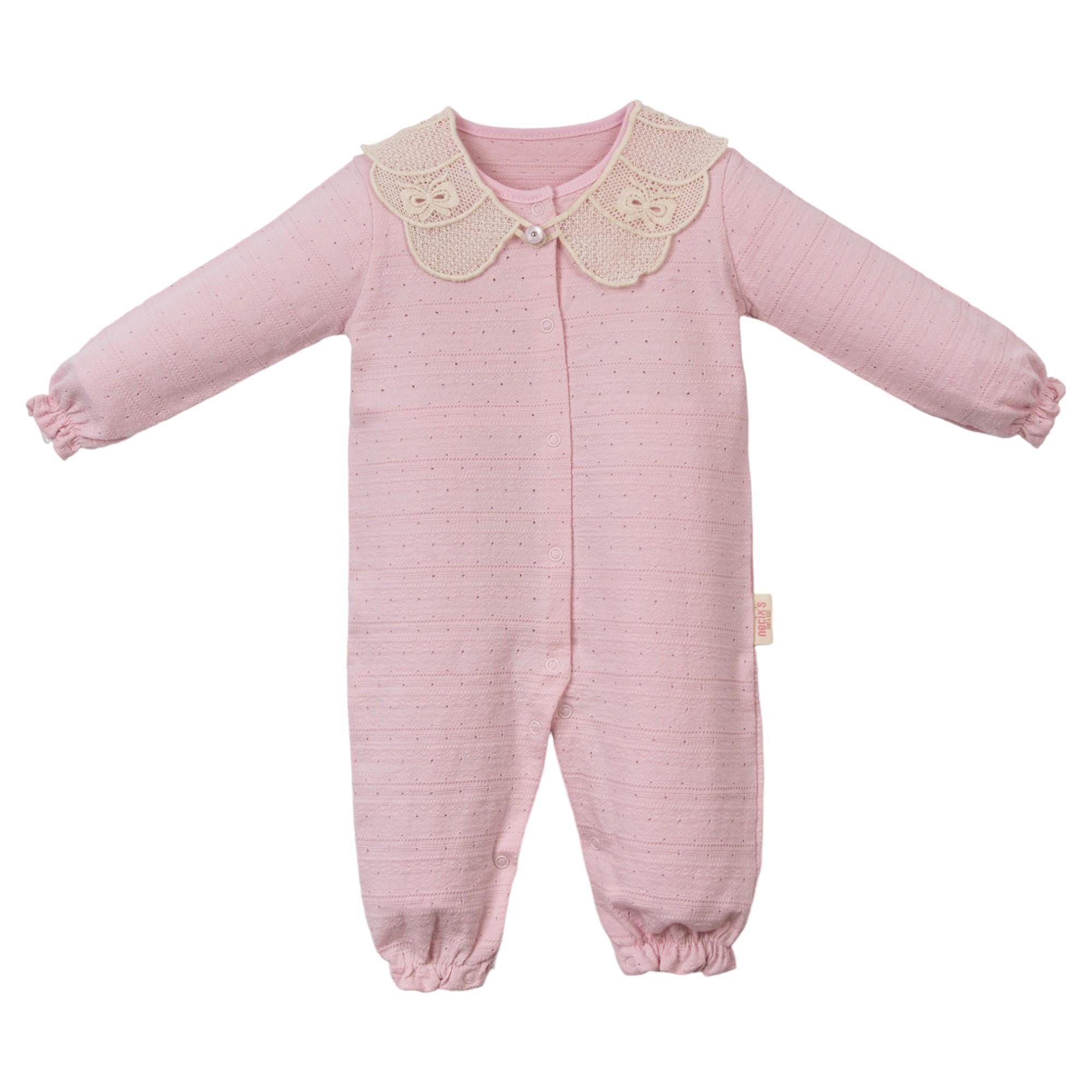 Sidney Hazır Yakalı Kız Bebek Tulum, zarif yaka tasarımı ve pastel tonlarıyla bebeğinizin gardırobuna şıklık katacak bir parça. Krem, Şık Pembe ve Elma Çiçeği renk seçenekleriyle her ortamda stil sahibi bir görünüm sunar.
