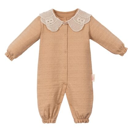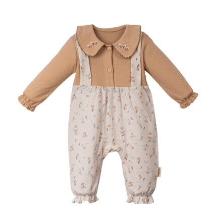 Sidney Hazır Yakalı Kız Bebek Tulum, zarif yaka tasarımı ve pastel tonlarıyla bebeğinizin gardırobuna şıklık katacak bir parça.